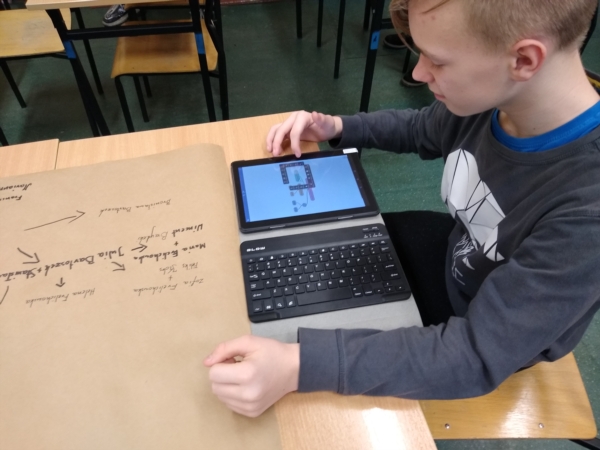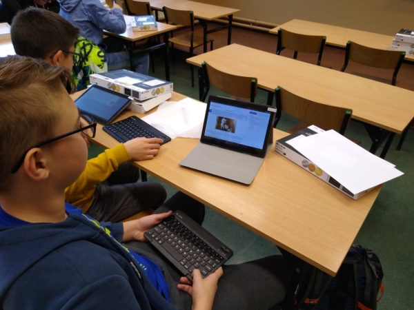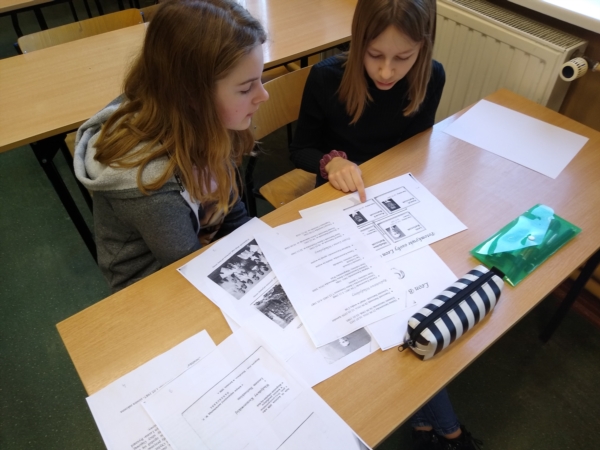 W styczniu uczniowie grupy projektowej przystąpili do kolejnych działań związanych z realizacją projektu Cyfrowa Szkoła, którego tematem jest: "Historia pewnej rodziny z Białośliwia - rodzina Bartoszków". Do głównych celów etapu realizacyjnego należało dalsze zbieranie i analizowanie materiałów źródłowych, obsługa narzędzi internetowych do tworzenia treści w formie graficznej, przeprowadzenie wywiadu z zaproszonym gościem, stworzenie drzewa genealogicznego oraz przygotowanie filmu przedstawiającego najważniejsze wykonywane działania.