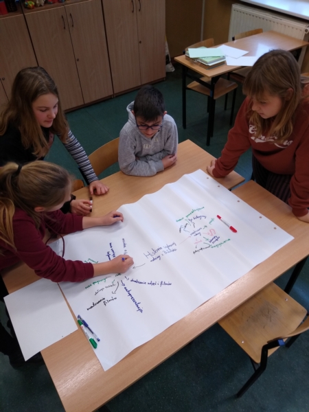 Uczniowie odpowiedzialni za zbieranie informacji przygotowali mapy mentalne przedstawiające wyniki podjętych działań oraz najważniejsze etapy projektu. Z kolei ci, którzy należeli do grupy redakcyjnej, przygotowali opisy dotyczące przeprowadzanych działań i umieszczali je na platformie cyfrowej (stronie przeznaczonej do działań projektowych). Grupa reportersko - informatyczna przygotowała cyfrową mapę mentalną na temat wyników działań oraz infografikę z najważniejszymi wydarzeniami z etapu przygotowawczego.