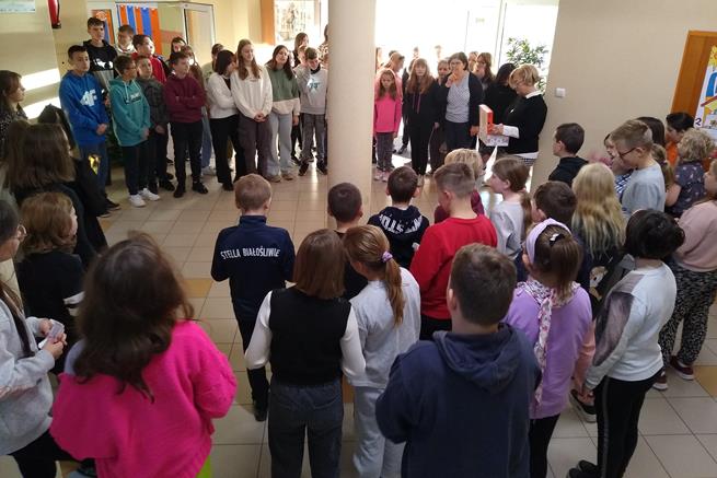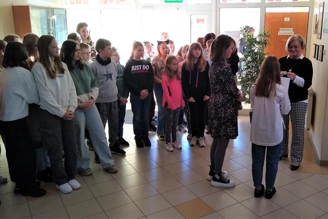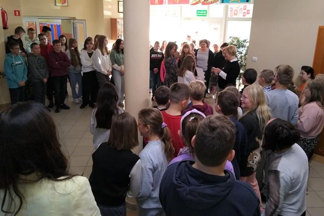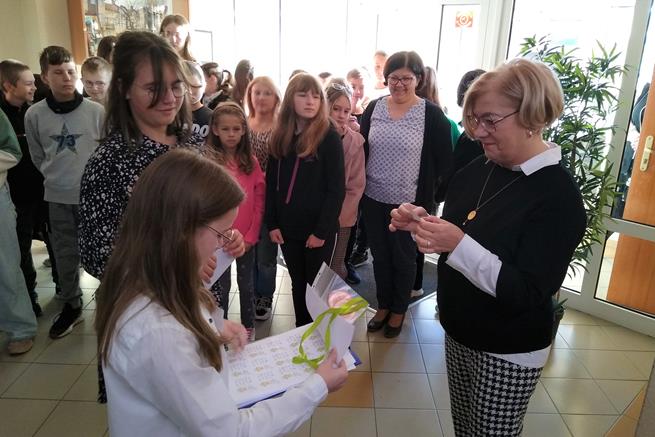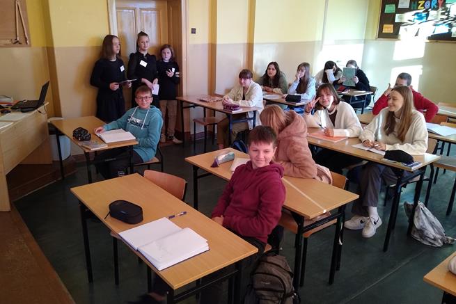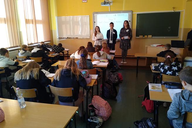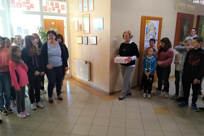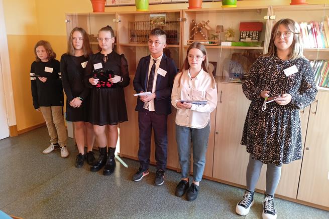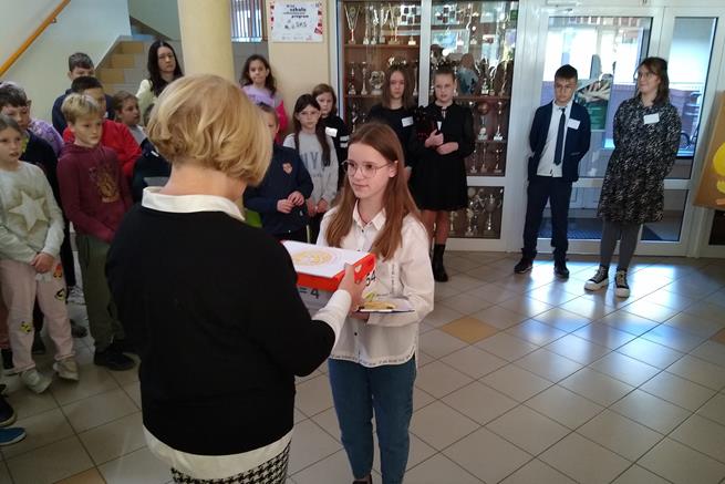 Święto tabliczki mnożenia odbywa się w pierwszy piątek października. Ta ciekawa akcja matematyczna rozpoczęła się już w naszej szkole w dniu 6 października, gdy uczennice klasy VIIId - Iga Kubacka, Maja Łukasik i Zuzanna Bogdańska przedstawiły swoim kolegom i koleżankom z klas IV i V sposoby mnożenia na palcach i japoński system mnożenia. W piątek 7 października - dyrektor szkoły Jolanta Lubińska przekazała zestawy egzaminacyjne komisji i uroczyście otworzyła XII Światowy Dzień Tabliczki Mnożenia. Komisje egzaminacyjne w składzie: Antonina Coblewska, Hubert Szmyt, Marcelina Ramusiewicz, Małgorzata Murzyn, Zofia Jasinska oraz Szymon Krokos przeprowadziły wśród uczniów klas IV-VIII oraz chętnych nauczycieli egzamin ze znajomości tabliczki mnożenia i przyznały certyfikaty za poprawnie rozwiązany test. Na lekcjach matematyki uczniowie rozwiązywali również łamigłówki, a na informatyce układali algorytm w programie Scratch związany z tabliczką mnożenia.