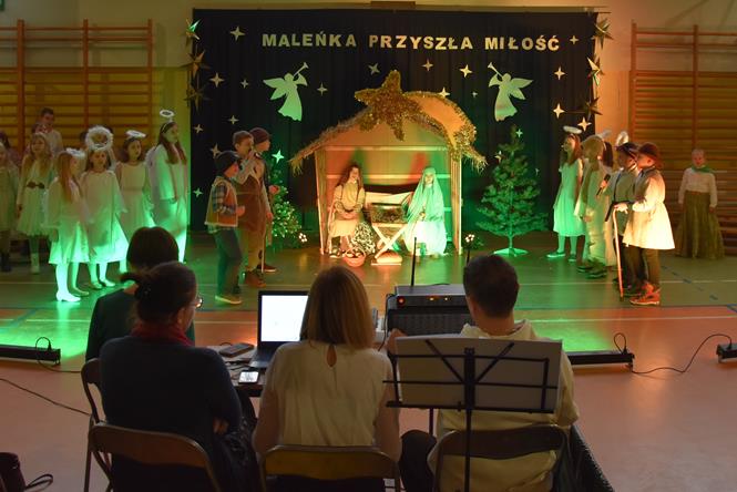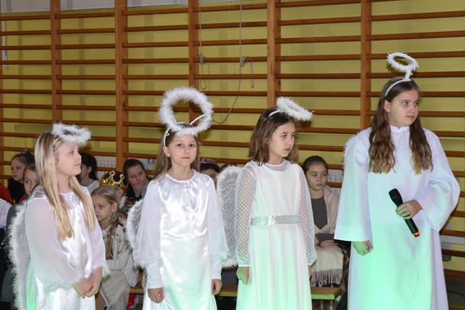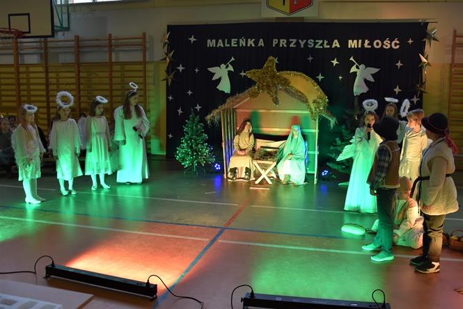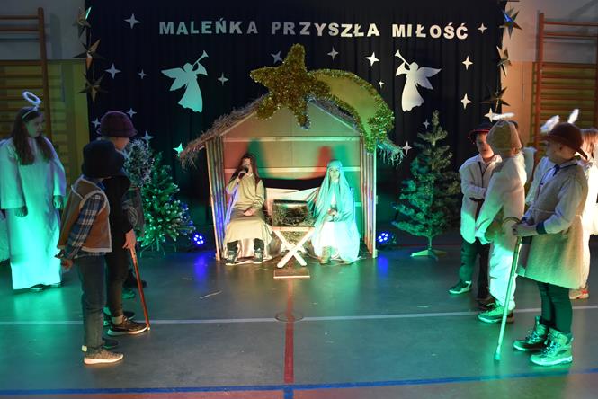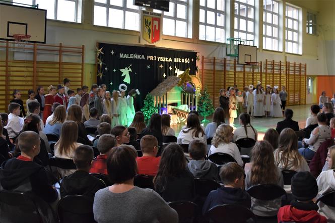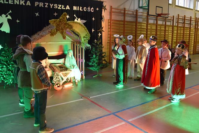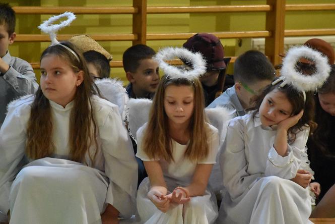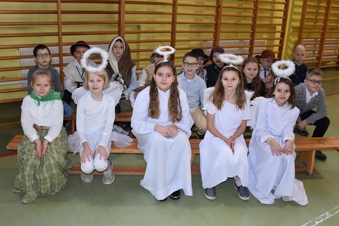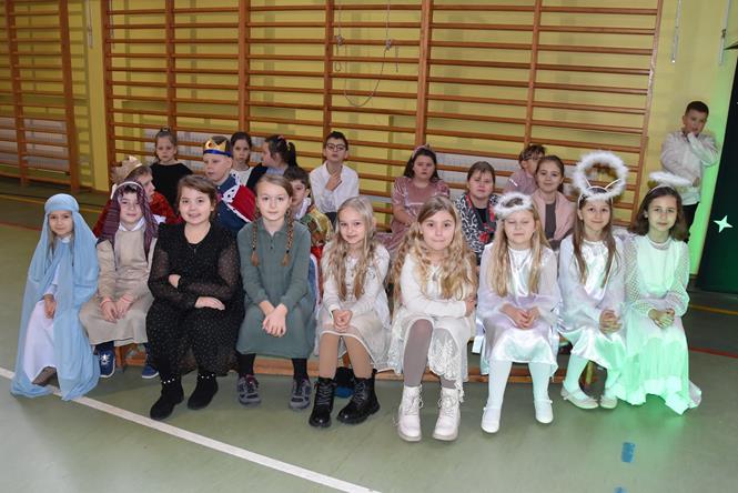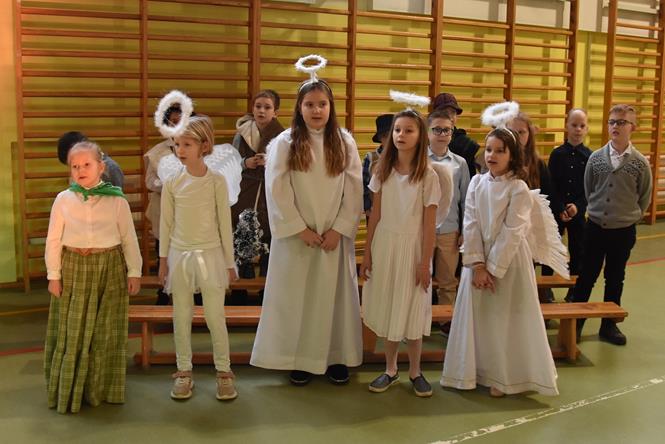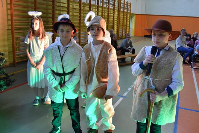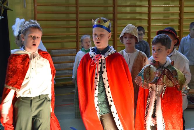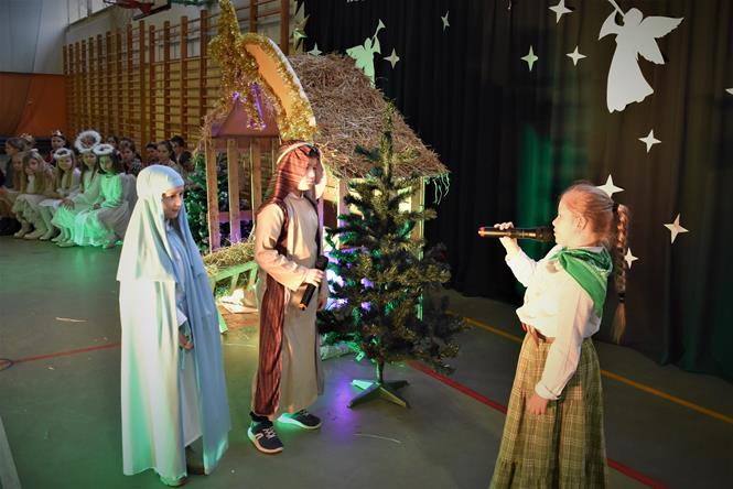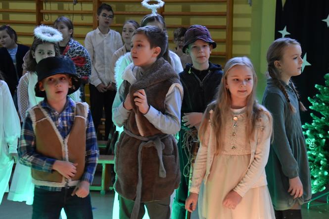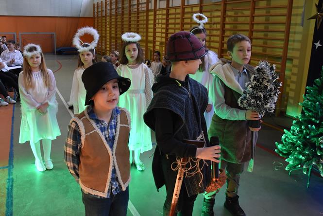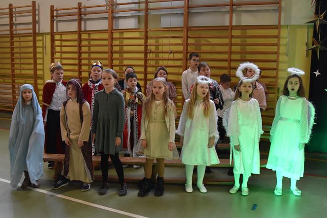 Uczniowie z klasy IIIa oraz IIIb zaprezentowali bożonarodzeniowe jasełka, które przygotowali pod opieką swoich wychowawczyń. Wprowadzili tym samym całą społeczność szkolną w atmosferę zbliżających się Świąt Bożego Narodzenia - pełną wzruszeń, ciepła i radości. Dzieci z wielkim zaangażowaniem odgrywały swoje role oraz śpiewały kolędy i pastorałki. Po występie klas młodszych, wszyscy mieli okazję wysłuchać piosenek świątecznych w wykonaniu chóru szkolnego. Na sam koniec przewodniczący z każdej klasy przekazał życzenia świąteczne dla wszystkich pracowników oraz uczniów szkoły. Bardzo dziękujemy!