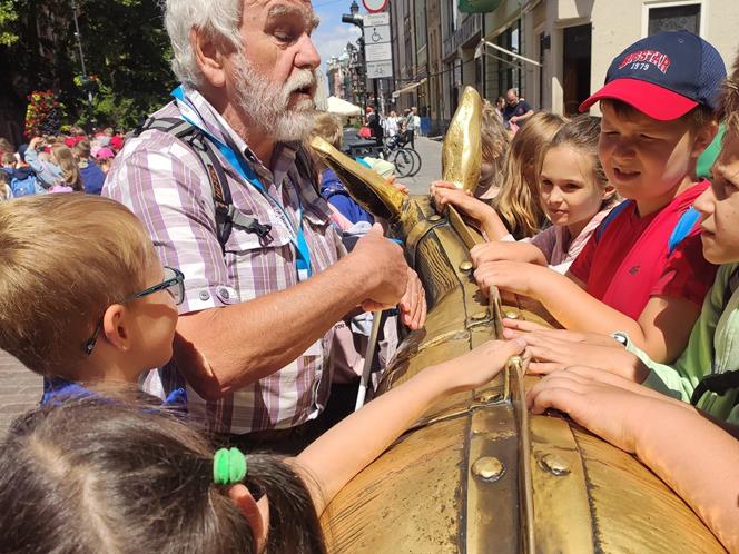 W dniu 11 czerwca klasy drugie pojechały do Torunia. Poznaliśmy tradycyjne punkty miasta: planetarium, w którym obejrzeliśmy seans filmowy Łajka Astro pies, następnie spacer po Starym Mieście z zabytkowymi kamieniczkami i legendami; flisak, żaby, kot, krzywa wieża; Teatr Baj, rejs statkiem po Wiśle, królowej polskich rzek; pieczenie pierników u Mistrza Bogumiła a następnie to, co lubimy najbardziej - zakup pamiątek w jednym sklepie wyrosły nam słodkie skrzydła. To była wspaniała zapowiedź wakacji! Dziękujemy p. Mikołajowi - przewoźnikowi z Krajenki za szczęśliwą podróż, p. Janowi Balcerzakowi za ciekawe opowieści oraz BP Słoneczna Przygoda za zorganizowanie wycieczki. A rodzicom za umożliwienie wyjazdu, który wpisuje się w kolejne szkolne wspomnienia. (Arleta Iwanowicz)
