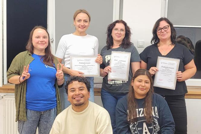 Zakończyliśmy w Lądku Zdroju nasze warsztaty językowe - EuroWeek! To był cudowny czas, pełen energii, kreatywności i inspirujących rozmów w języku angielskim. Doskonaliliśmy umiejętność komunikacji, rozwijaliśmy pewność siebie i bawiliśmy się świetnie w towarzystwie uczniów z innych szkół! Dziękujemy wszystkim uczestnikom za zaangażowanie, uśmiechy i pozytywną energię! A choć przy pożegnaniach nie zabrakło wzruszeń, wiemy, że za rok czeka nas kolejna, równie wspaniała przygoda!
