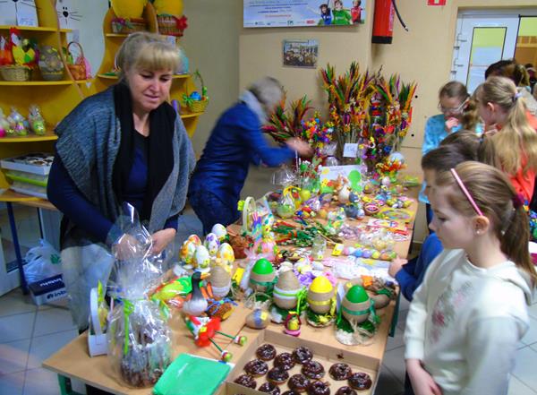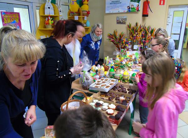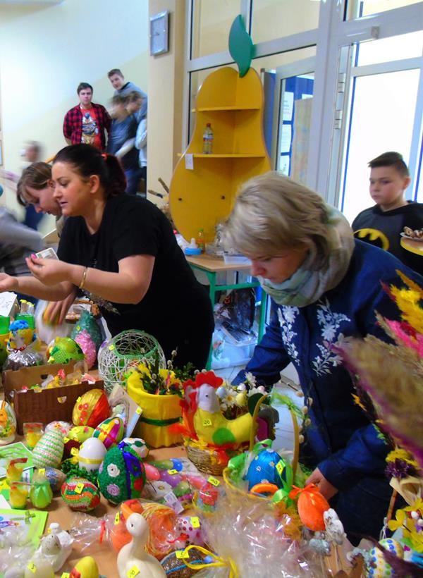 Wielkanoc za pasem! Dlatego Rada Rodziców po raz kolejny zorganizowała świąteczny kiermasz wielkanocny, z którego dochód zostanie przeznaczony na działalność statutową oraz wsparcie szkoły. Na stoisku pojawiły się zatem tradycyjne palmy, pisanki i szereg wielkanocnych przepięknych ozdób. Nie zabrakło również domowych wypieków. Była więc okazja do kupienia niepowtarzalnych, często własnoręcznie wykonanych przedmiotów, które posłużyć mogą do ozdobienia koszyka ze święconką czy wielkanocnego stołu.