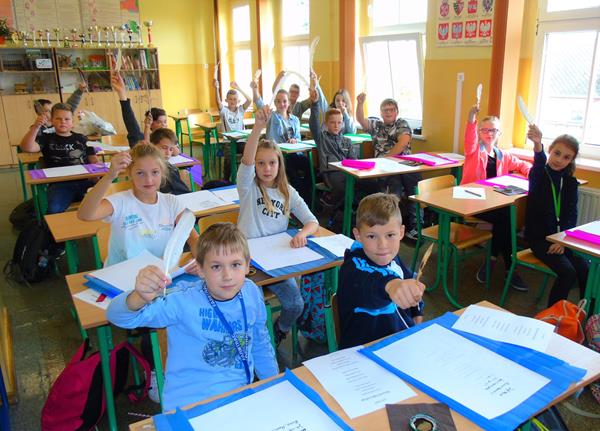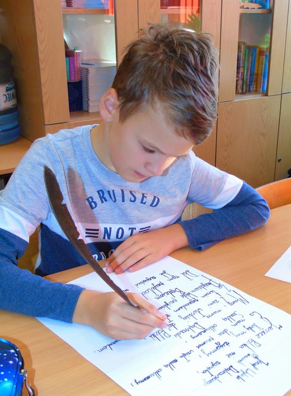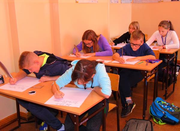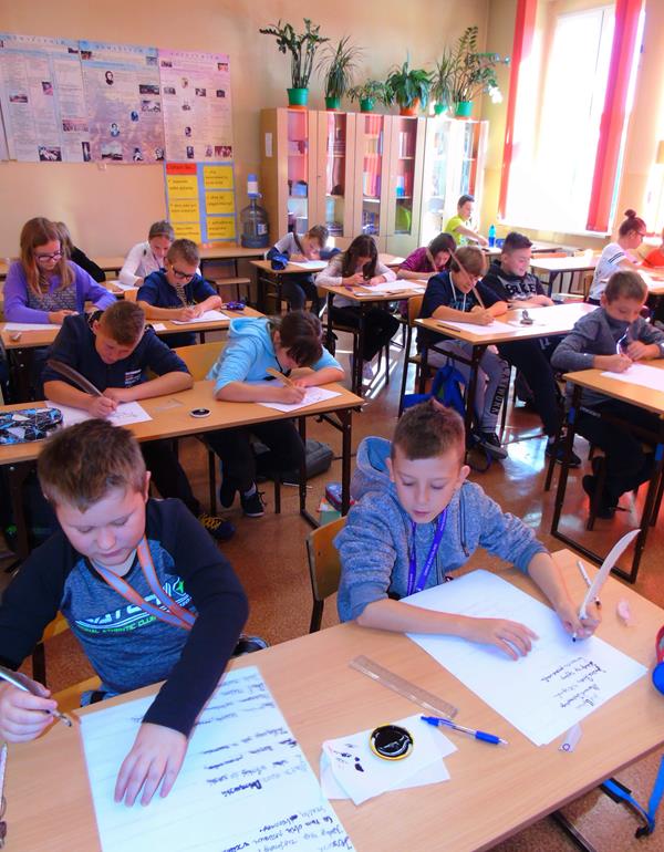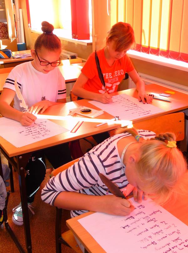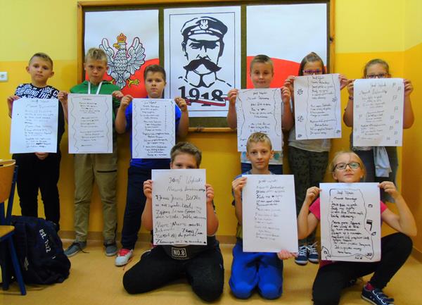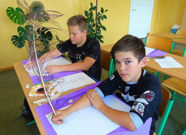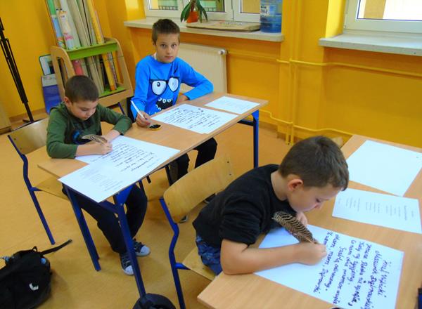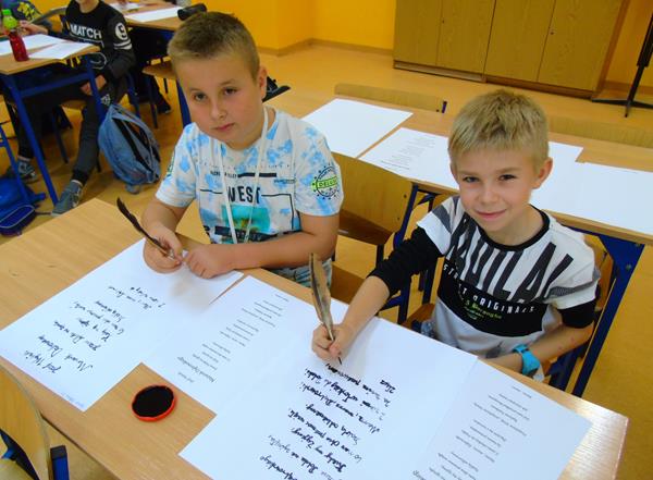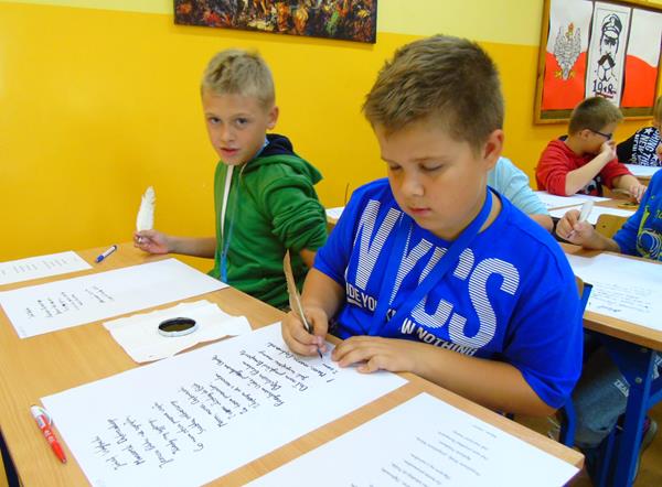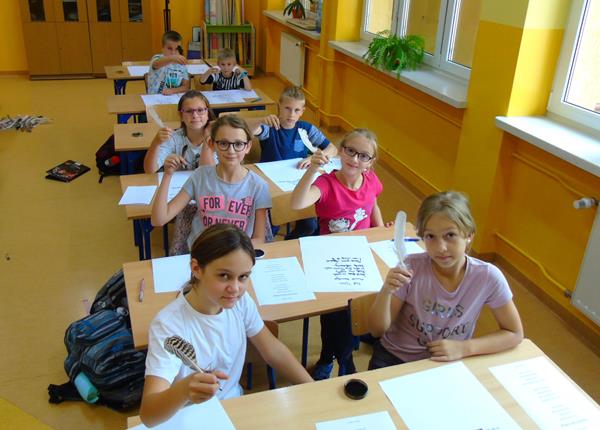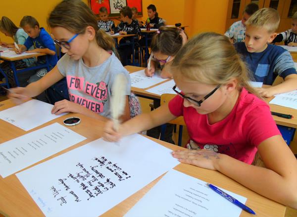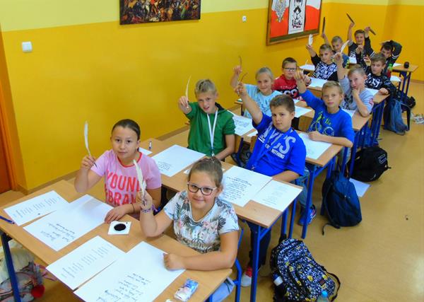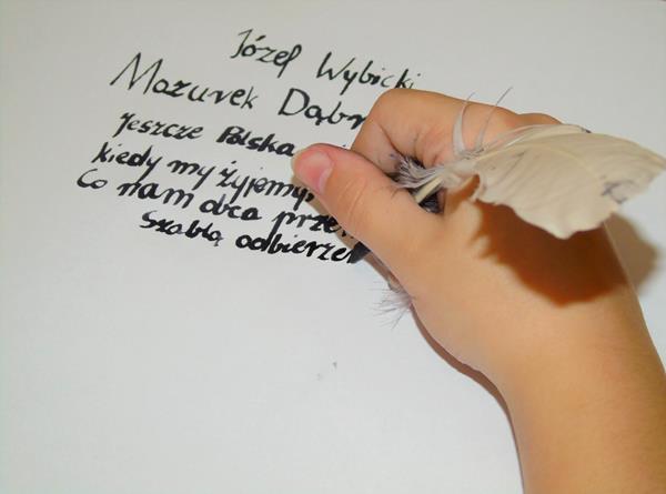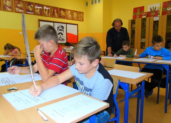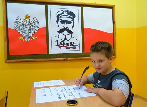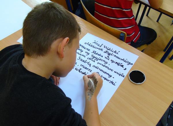 W ramach szkolnych inicjatyw zwiÄ…zanych z 100. rocznicÄ… odzyskania przez PolskÄ™ niepodlegÅ‚oÅ›ci zorganizowano dla uczniów klas piÄ…tych konkurs „Patriotycznie i kaligraficznie na urodziny Polski”. Celem konkursowej rywalizacji byÅ‚a popularyzacja znajomoÅ›ci hymnu narodowego oraz ksztaÅ‚towanie umiejÄ™tnoÅ›ci kaligraficznego pisania. DodatkowÄ… trudnoÅ›ciÄ… konkursu byÅ‚o wymaganie, aby uczestnicy zapisali tekst hymnu gÄ™sim piórem umaczanym w atramencie. Zadanie to pozwoliÅ‚o uczniom nie tylko doÅ›wiadczyć jak dawniej ludzie pisali, ale sprawiÅ‚o również wiele radoÅ›ci i satysfakcji. Wyniki konkursu poznamy w najbliższym czasie, a dla najlepszych kaligrafów czekajÄ… nagrody. Konkurs przeprowadzili nauczyciele historii oraz jÄ™zyka polskiego: Piotr Coblewski, Marta Grzonkowska-Kopera, Hanna Dominiak i Justyna Kromulska.