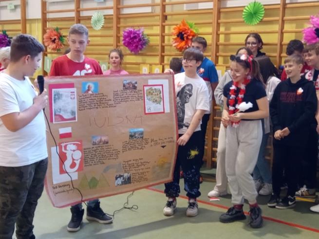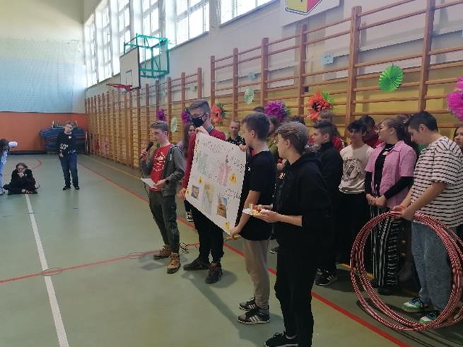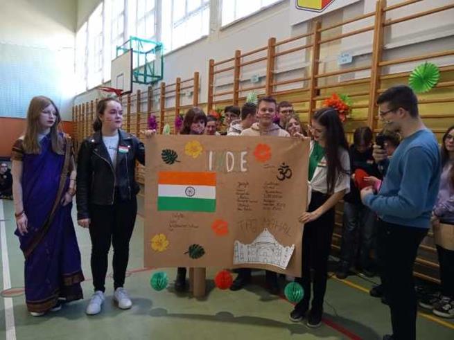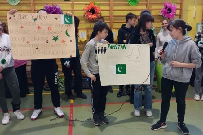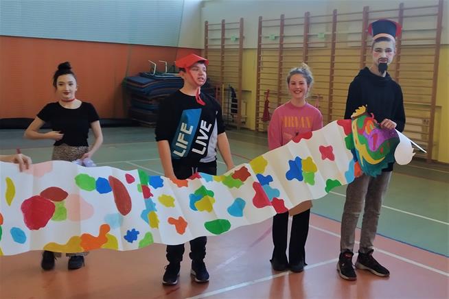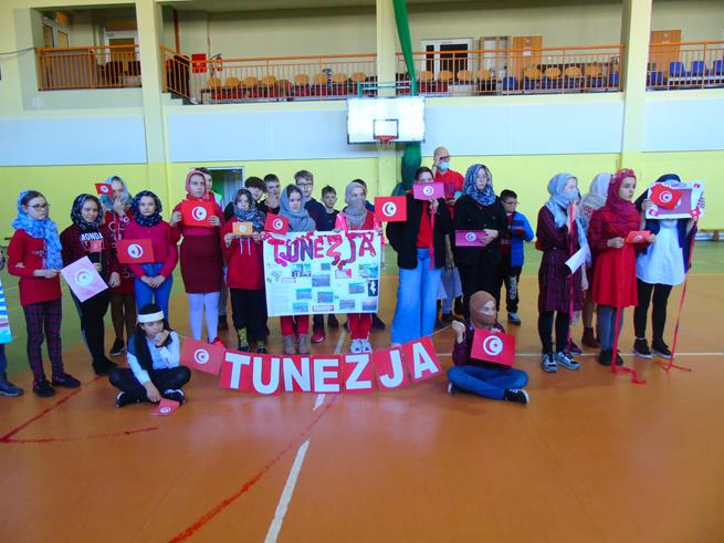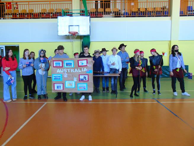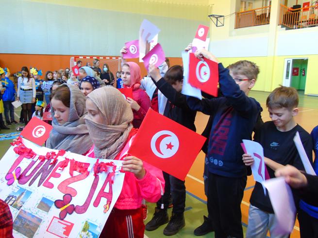 „Tak się bawi cały świat” – pod takim hasłem uczniowie klas IV-VIII świętowali nadejście upragnionej wiosny. W ramach szkolnej aktywności rekreacyjno-integracyjnej poszczególne klasy przygotowały materiały oraz prezentowały ciekawe informacje związane z wylosowanymi państwami. Należało zaprezentować m.in.: plakat ukazujący ciekawe miejsca oraz znane osoby, zabawę narodową lub taniec, zwroty grzecznościowe w danym języku, a ponadto wszyscy uczniowie danej klasy powinni mieć przynajmniej jeden element stroju w barwach narodowych wylosowanego państwa. Wszystkie prezentacje klasowe odbyły się w sali sportowej, a oceniała je komisja konkursowa.