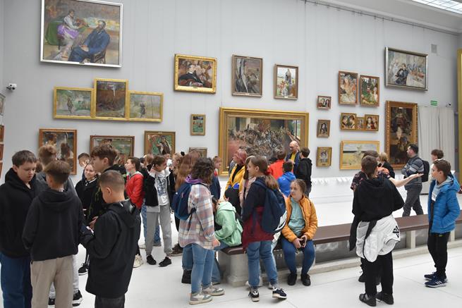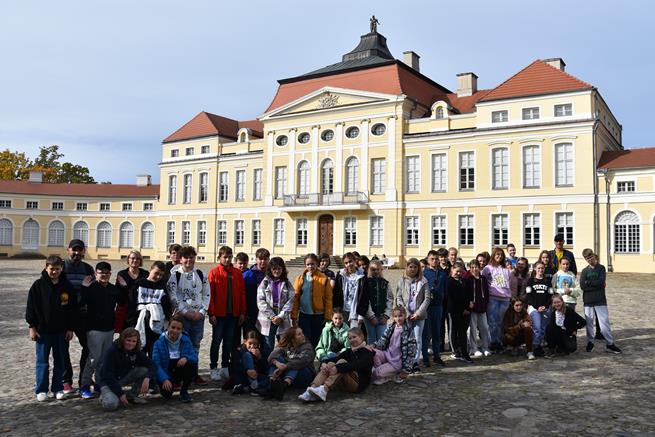Zespół pałacowo-parkowy w Rogalinie był głównym punktem krajoznawczo-edukacyjnej wycieczki uczniów klas szóstych. Plany budowy tej późnobarokowej rezydencji Raczyńskich z II połowy XVIII wieku przewidziane były pierwotnie dla Białośliwia. Kazimierz Nepomucen Raczyński, ówczesny właściciel Białośliwia, planował wybudować okazałą rodową rezydencję. Jednak niepewna sytuacja polityczna ziemi nadnoteckiej oraz zbliżający się rozbiór Rzeczypospolitej spowodował, że swoje ambitne budownicze plany zrealizował ostatecznie w podpoznańskim Rogalinie. Stąd wizyta białośliwskich uczniów w Rogalinie ma zawsze wymiar szczególny i sentymentalny. W Rogalinie uczniowie obejrzeli wnetrza pałacowe, galerię malarstwa, powozownię oraz otoczenie parkowe z największym skupiskiem dębów w Europie. W dalszej kolejności szóstoklasiści udali się do Poznania, aby obejrzeć film „King: Mój przyjaciel lew”. Opiekę nad uczniami sprawowali nauczyciele: Marcin Załachowski, Wojciech Kubiński, Piotr Coblewski oraz Marta Grzonkowska-Kopera.