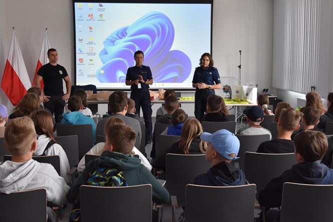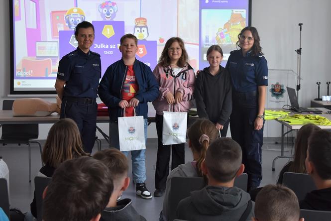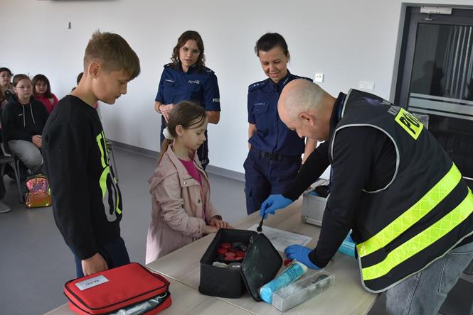 W ramach realizacji projektu „Dbam o zdrowie - odżywianie, terapia, bezpieczeństwo”, uczniowie klas IV udali się do Komendy Powiatowej Policji w Pile, aby uczestniczyć w tematycznych pokazach i zajęciach edukacyjno-profilaktycznych. Ich tematyka dotyczyła zagadnień związanych przede wszystkim z bezpieczeństwem w ruchu drogowym oraz udzielania pierwszej pomocy przedmedycznej. Uczniowie mogli również sprawdzić swoją dotychczasową wiedzę niezbędną do uzyskania w najbliższym czasie karty rowerowej, uczestnicząc w interaktywnym guizie. Wizyta w siedzibie powiatowej Policji była również okazją do jej zwiedzenia oraz poznania zadań i codziennej pracy funkcjonariuszy. Niezwykle atrakcyjny był również dla uczniów pokaz z psem tropiącym, a także spotkanie z technikiem kryminalistycznym. Opiekę nad czwartoklasistami sprawowali wychowawcy klas: Wojciech Coblewski (IVa), Malwina Rzonska (IVb), Wojciech Kubiński i Piotr Coblewski.
