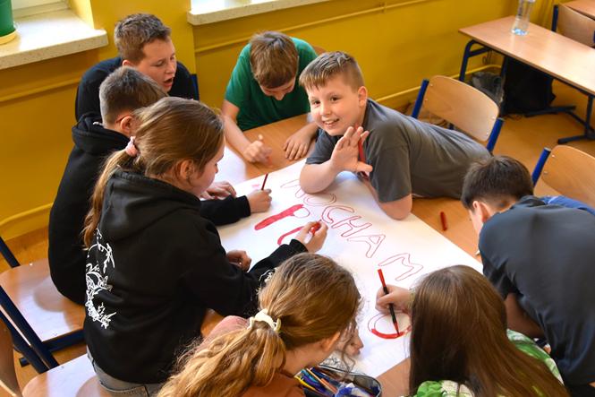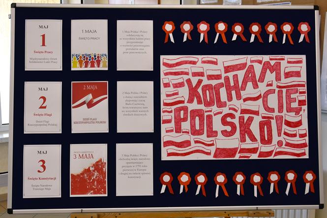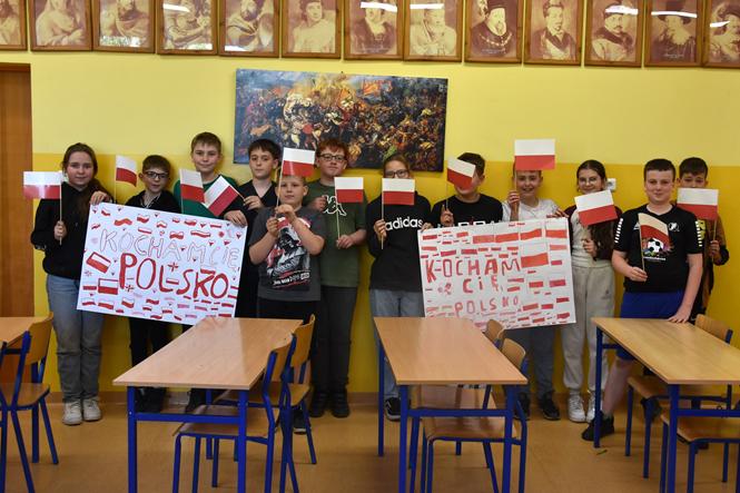 Białośliwscy uczniowie swoimi działaniami zaakcentowali obchodzony 2 maja – Dzień Flagi Rzeczypospolitej Polskiej. Było więc wspólne zdjęcie wszystkich uczniów z biało-czerwonym akcentem oraz klasowe okolicznościowe plakaty z przewodnim hasłem – „Kocham Cię, Polsko!”
