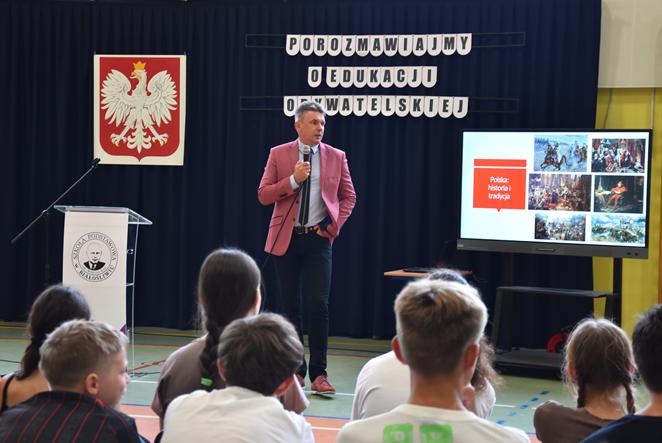 Białośliwscy uczniowie z klas VI-VIII mieli okazję spotkać się z politologiem - prof. dr hab. Jackiem Knopkiem. Profesor jest samodzielnym pracownikiem naukowym, a jego zainteresowania badawcze to stosunki międzynarodowe, systemy polityczne, przemiany społeczne i cywilizacyjne, kwestie narodowościowe i polonijne oraz polityka regionalna. Wydarzenie miało miejsce w ramach działań podjętych przez szkołę w zakresie uczestnictwa w XXXI sesji Sejmu Dzieci i Młodzieży, którego tegoroczna edycja zatytułowana jest – „Porozmawiajmy o edukacji obywatelskiej”. Spotkanie z zaproszonym profesorem Knopkiem wzbogaciło wiedzę uczniów i pozwoliło zrozumieć co to jest postawa obywatelska oraz jak można ją prezentować w codziennym życiu – i w ten sposób być dobrym obywatelem oraz Polakiem. Wyłonione ze spotkania wnioski posłużą trzem uczniowskim posłom, którzy będą w Warszawie uczestniczyli w posiedzeniu dziecięcego Sejmu, do przedstawienia ich podczas dalszych działań związanych z realizacją zagadnienia edukacji obywatelskiej. Spotkanie okazało się wartościowym i ciekawym doświadczeniem.