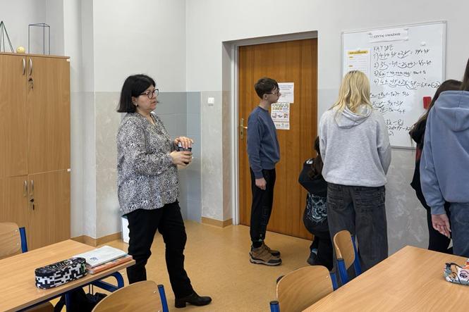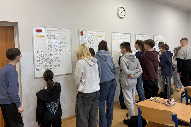 Kanadyjska metoda prowadzenia zajęć z matematyki znalazła swoje miejsce w również naszej szkole, a jej inicjatorką i realizatorką jest nauczycielka matematyki - Justyna Heimann. Metoda Myślącej Klasy to zestaw drobnych zmian w sposobie prowadzenia lekcji, które w rewolucyjny sposób zmieniają klasową rzeczywistość i pobudzają aktywność i kreatywność uczniów. Lekcja polega na rozwiązywaniu ćwiczeń i zadań problemowych najlepiej w 3-osobowych grupach. Tutaj kluczowe znaczenie mają też ustne odpowiedzi. Grupy tworzone są w losowy sposób i często zmienia się ich skład. By zajęcia mogły być realizowane sala została przeorganizowana, doposażona w nowy ekran interaktywny i 5 pionowych, zmazywalnych tablic, przy których uczniowie pracując, stoją. Jest też potrzebny pisak. W tej metodzie uczniowie są bardziej skoncentrowani, pracują wspólnie, nie boją się popełniania błędów (bo w każdej chwili notatki można zmazać) i wszyscy mają jednakowy dostęp do notatek. (Fb)