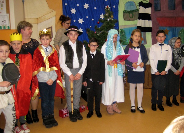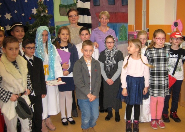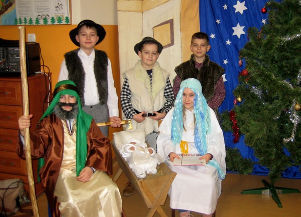 „Wierzysz, że Bóg narodziÅ‚ siÄ™ w betlejemskim żłobie, lecz biada ci, jeżeli nie zrodziÅ‚ siÄ™ w tobie” - pisaÅ‚ Adam Mickiewicz. Wszyscy czujemy atmosferÄ™ Å›wiÄ…t Bożego Narodzenia, które muszÄ… mieć wyraz wewnÄ™trznej przemiany. Adwent, który przeżywamy powinien być okresem wyciszenia i odsuniÄ™cia siÄ™ od zgieÅ‚ku tego Å›wiata. W skomercjalizowanym Å›wiecie, na ulicach, w centrach handlowych, w Å›wiÄ…tecznych dekoracjach nie ma miejsca na potrzeby drugiego czÅ‚owieka. W tym przedÅ›wiÄ…tecznym okresie uczniowie klasy IVd, pod kierunkiem Justyny Kromulskiej i Malwiny Rzonskiej, przygotowali dla zaproszonych goÅ›ci jaseÅ‚ka zatytuÅ‚owanÄ… „Wigilijna ulica”. Chór szkolny pod opiekÄ… MaÅ‚gorzaty CzÄ™stochowskiej przygotowaÅ‚ oprawÄ™ muzycznÄ… wystÄ™pu, zaprezentowaÅ‚ piÄ™kne kolÄ™dy i Å›wiÄ…teczne piosenki, do których akompaniowali uczniowie. MogliÅ›my zobaczyć Å›wiÄ…tecznÄ… ulicÄ™, na której panuje ruch i gwar. Wszyscy za czymÅ› pÄ™dzÄ…, przygotowujÄ… siÄ™ do Å›wiÄ…t, myÅ›lÄ… o prezentach, pracy i osiÄ…ganiu korzyÅ›ci. Nie zauważajÄ… jednak wokół siebie samotnych i potrzebujÄ…cych. JaseÅ‚ka miaÅ‚a uÅ›wiadomić nam, abyÅ›my zatrzymali siÄ™ na chwilÄ™ i uczcili narodzenie Bożej Dzieciny. Zebranych powitaÅ‚a dyrektor szkoÅ‚y Zofia Boć-Sosnowska, która zaznaczyÅ‚a, iż wystÄ™p ten zostaÅ‚ przygotowany specjalnie dla byÅ‚ych pracowników oÅ›wiaty, którzy wiele lat pracowali w naszej szkole. Å»yczyÅ‚a wszystkim, abyÅ›my pamiÄ™tali o tym, co w zbliżajÄ…cych Å›wiÄ™tach jest najważniejsze. Å»ebyÅ›my w przedÅ›wiÄ…tecznej gorÄ…czce nie przedkÅ‚adali tego, co jest tylko otoczkÄ… Å›wiÄ…t Bożego Narodzenia nad to, co dzieje siÄ™ w naszych sercach.